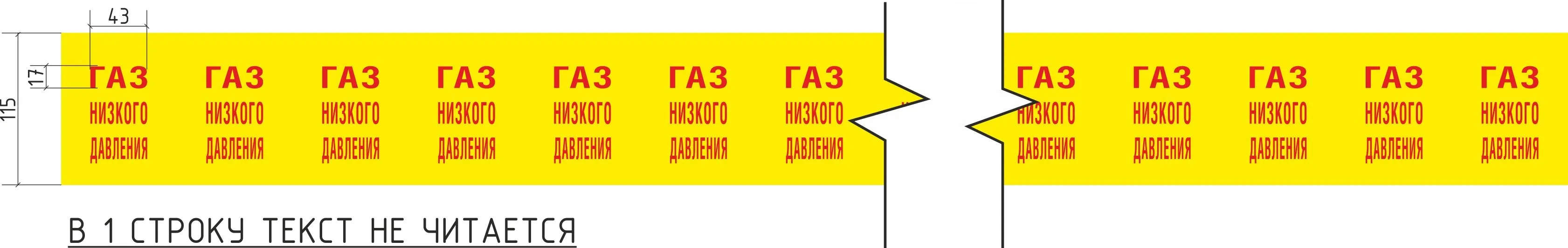 Лента маркировочная Газ низкого давления, 100 мм х 50 м