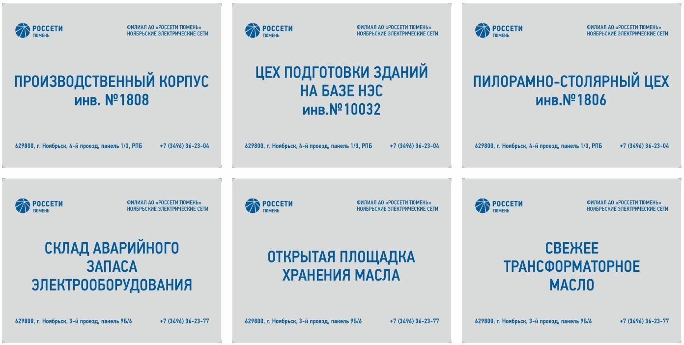 Таблички производственных помещений РОССЕТИ