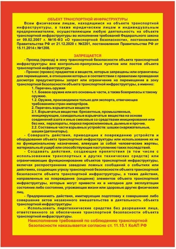 Объект транспортной инфраструктуры. Запрещается