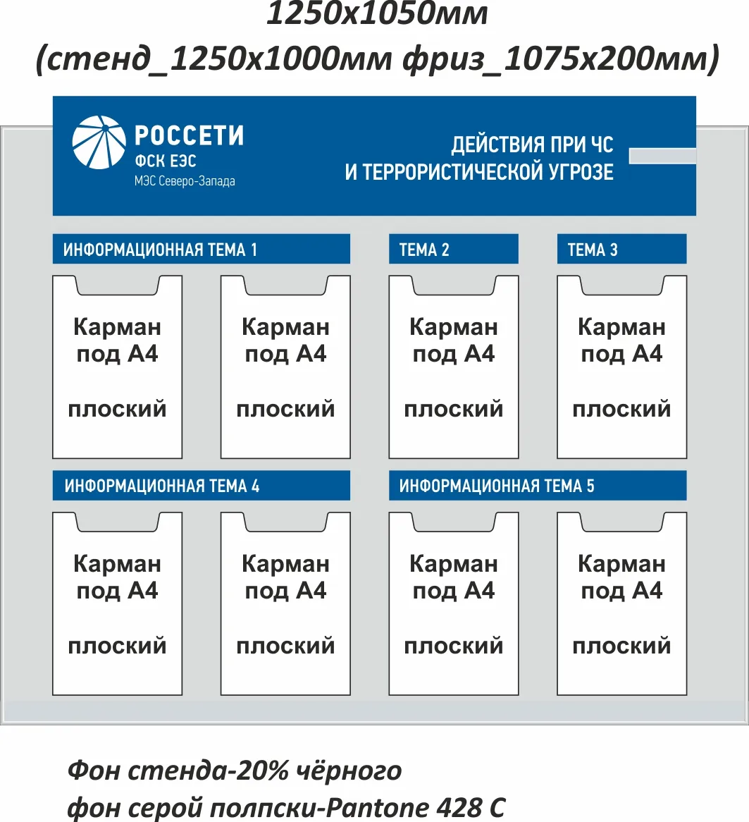 Стенд 1250x1050, Металлокомпозит 3 мм, ал. профиль, накладной фриз 1075х200мм