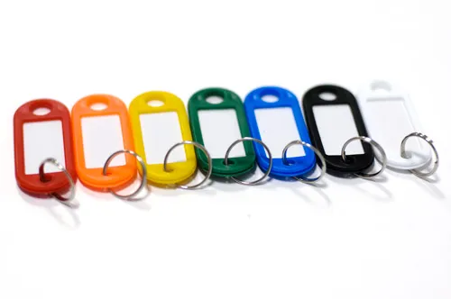 Бирки для ключей (метки для ключей) служат для цветовой и текстовой (номерной) идентификации ключей, что способствует большей организованности и быстрому нахождению ключей от нужных помещений. Все бирки для ключей комплектуются кольцом с никелированным покрытием. Для удобства с одной стороны бирки имеется отверстие для подвешивания на крючок в шкафах для ключей.