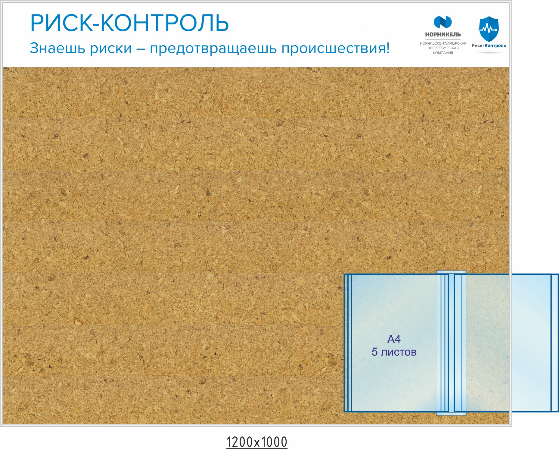 Стенд - Охрана труда. Карман плоский горизонтальный А4-2шт, карман плоский вертикальный А4-4шт, перекидное устройство А4 на 10 рамок (1200х1000; Пластик ПВХ 4 мм, алюминиевый профиль)
