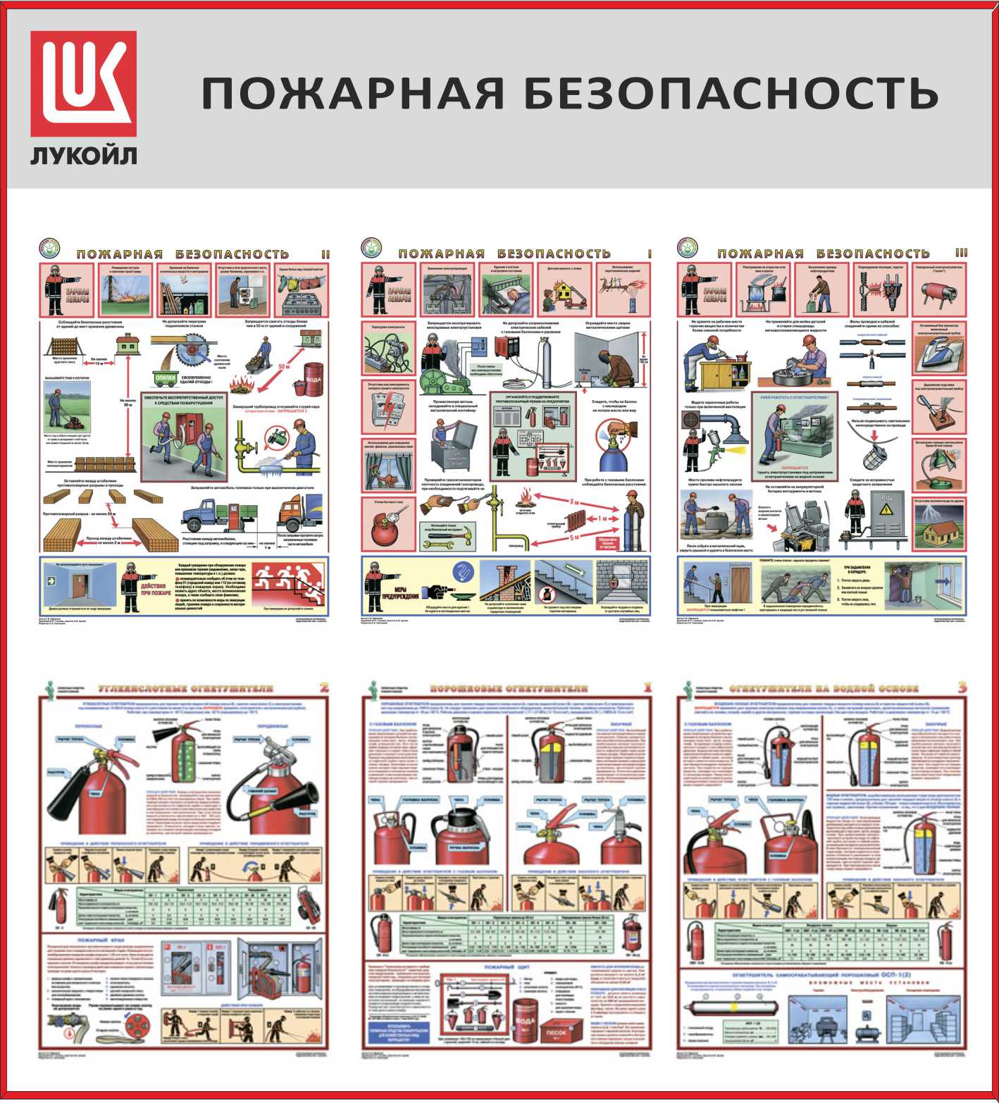 Стенд для ОТ пожарная безопасность, 6 плакатов А3 (1 200х1 000; Пластик ПВХ 4 мм, Алюминиевый профиль)