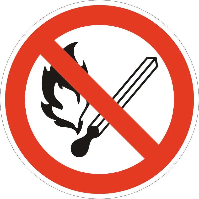 Знак Р02. Запрещается пользоваться открытым огнем и курить